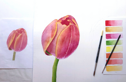 Deze 3-daagse workshopreeks is eveneens bedoeld voor absolute beginners, maar biedt meer tijd om de aquareltechniek in grotere diepgang en detail te verkennen. Verspreid over drie sessies (binnen één maand of in één week tijdens het zomerseizoen) werk je aan iets complexere onderwerpen ~ zoals meerkleurige groenten, bloemen met gedetailleerde structuur of paddenstoelen met textuur en patronen.
